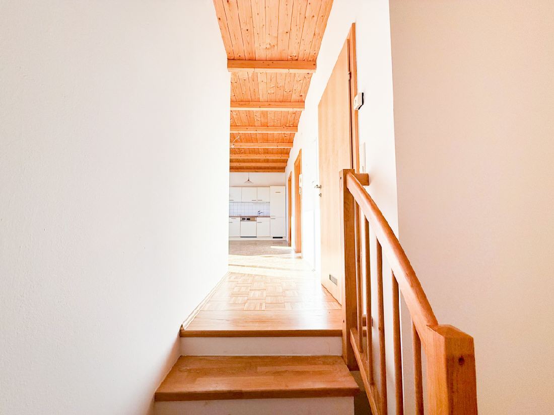 Von dort aus führt eine Treppe in das Dachgeschoss, in dem sich die eigentlichen Wohnräume befinden.