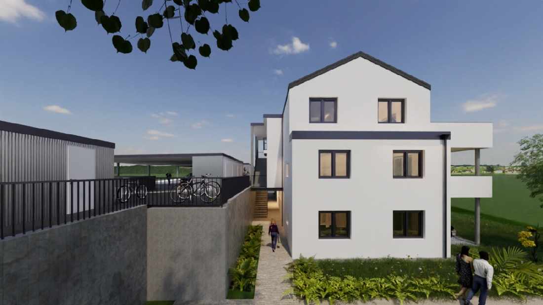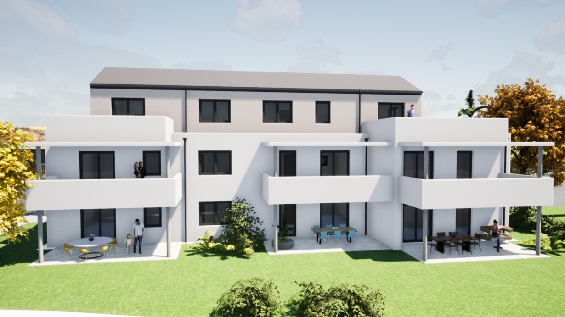Das Neubauprojekt erstreckt sich über drei Etagen und fügt sich harmonisch in die idyllische, ruhige Umgebung ein, die durch ihre Wohnqualität und ausgezeichnete Infrastruktur überzeugt.