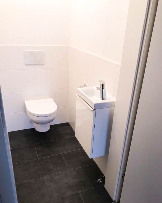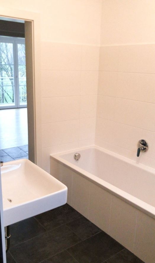 Des weiteren kommt man vom Gang in das ebenfalls sehr helle Badezimmer mit Badewanne & Dusche, Waschbecken und Waschmaschinenanschluss. Ein WC wurde seperat inklusive Handwaschbecken nebenan installiert.